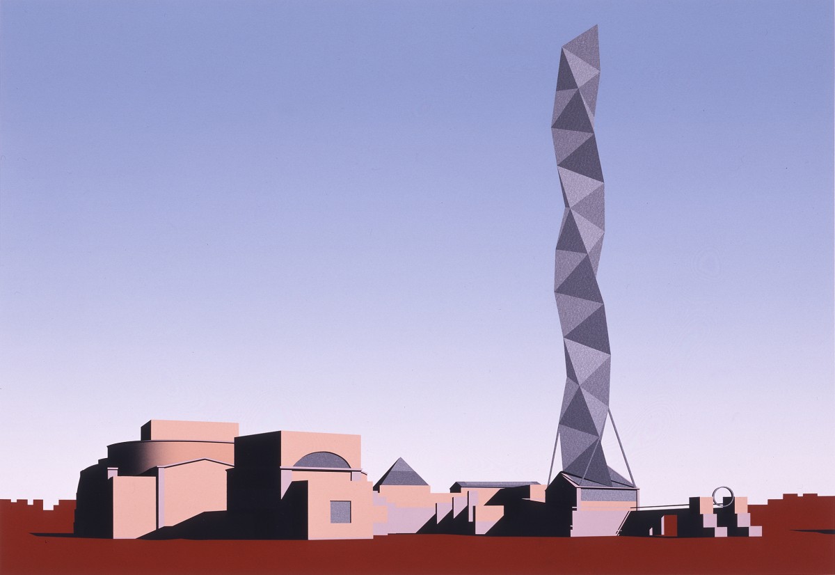 Isozaki Arata, Art Tower Mito 水戸芸術館, 1988 – 1989, Silkscreen Print, Image 42.5 x 61 cm, Sheet 51.5 x 73 cm