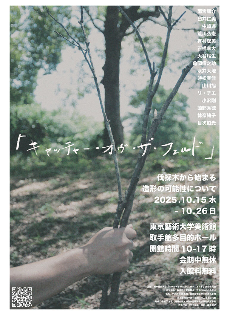 小沢剛は、2025年10月15日(水)から26日(日)まで東京藝術大学大学美術館の取手館で開催されるグループ展「キャッチャー・オヴ・ザ・フェルド」に参加いたします。取手市内の小学校で伐採された、学校の象徴であった桜の巨木、そして学内に伐採された木も活用し、取手校地の学生とともに制作した作品および地域連携型アートを紹介いたします。